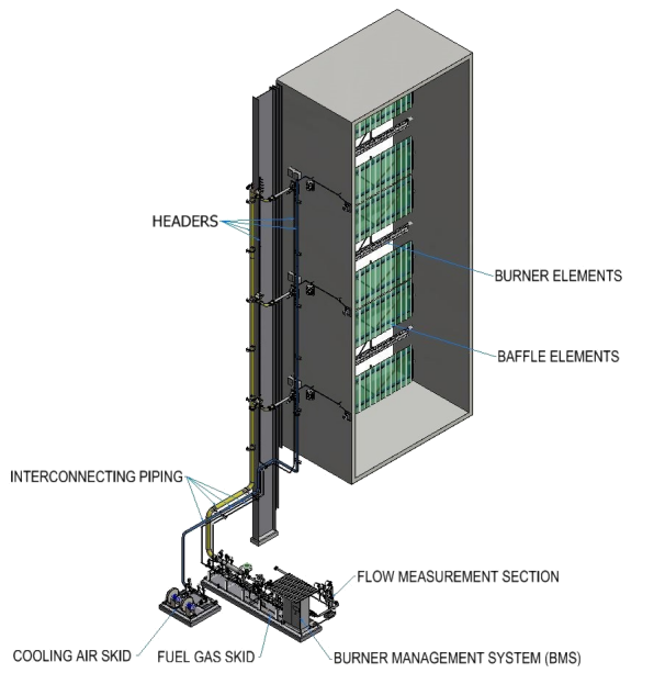 Grid type duct burners can be used as a backup system to continue HRSG operation when the turbine is stopped. In that case, fresh air from combustion air fans is routed to the duct.